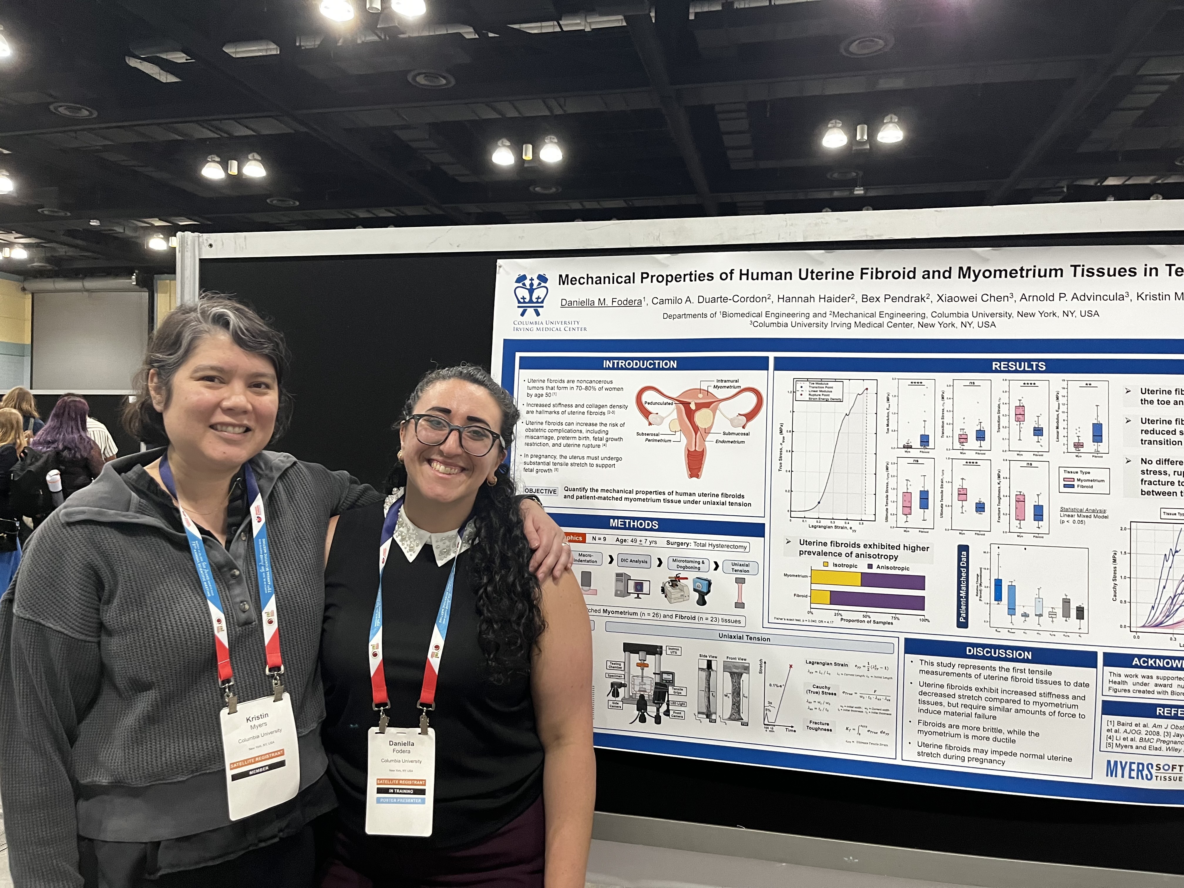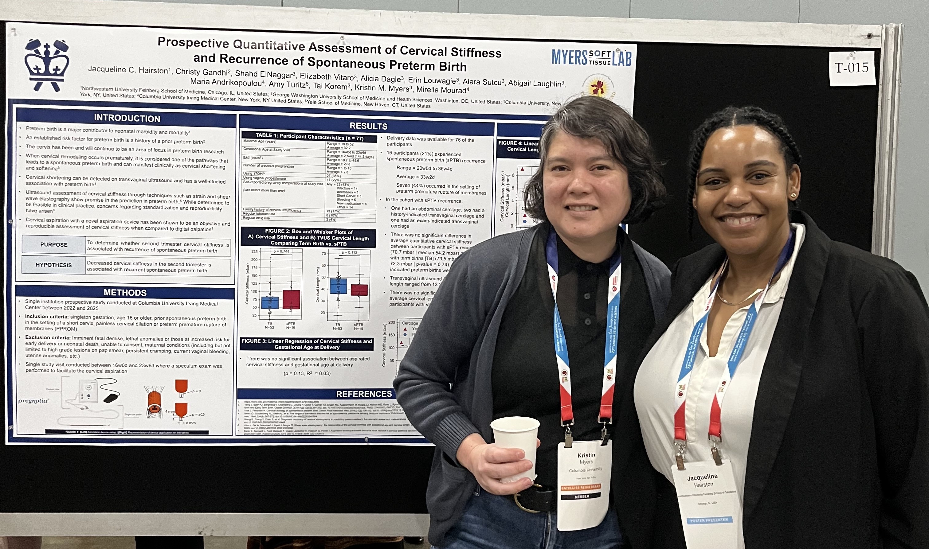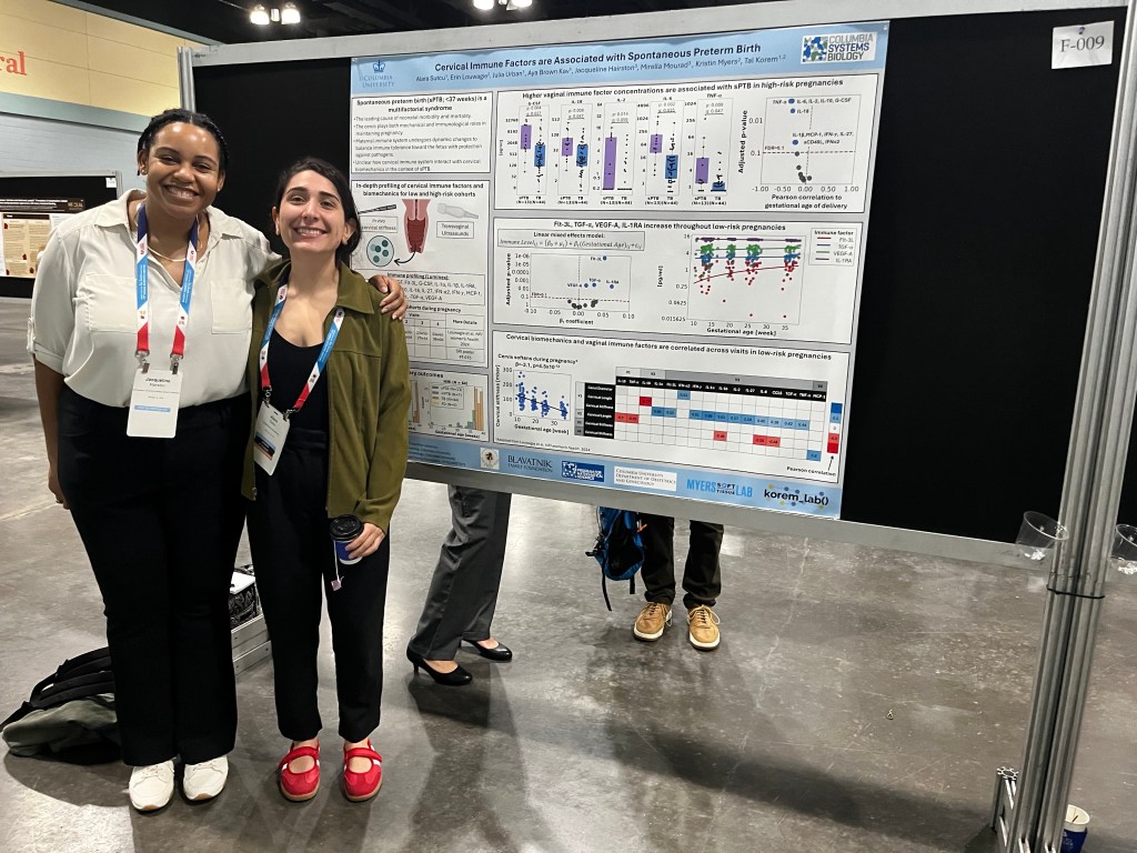 Daniella Fodera, Alara Sutcu, and Dr. Jacqueline Hairston all gave wonderful poster presentations! Daniella’s poster investigated the tensile mechanical properties of uterine fibroids and myometrium tissue, Alara’s poster focused on cervicovaginal immune factors associated with spontaneous preterm birth, and Dr. Hairston’s poster highlighted a novel aspiration device for quantitative assessment of cervical stiffness.