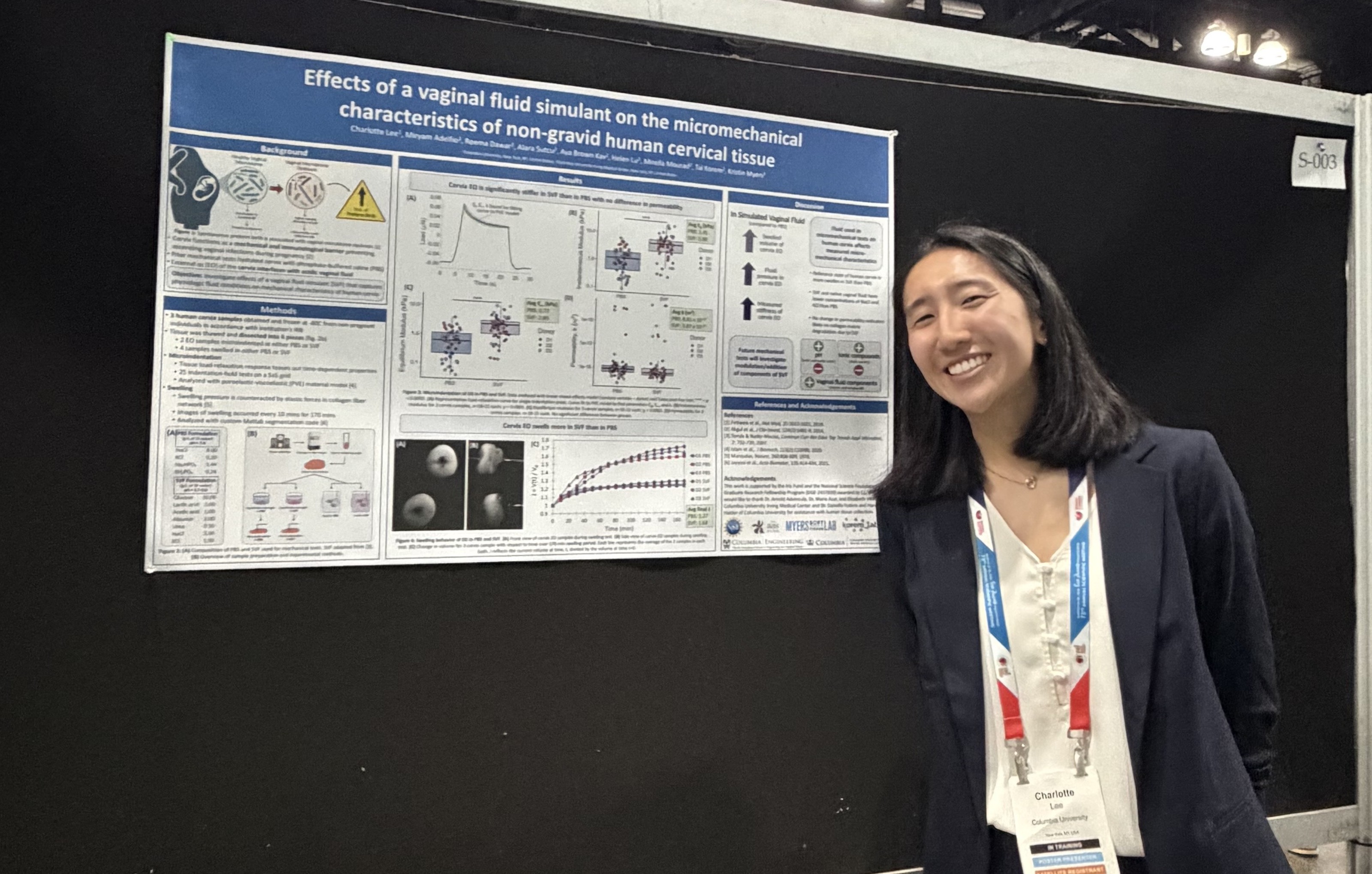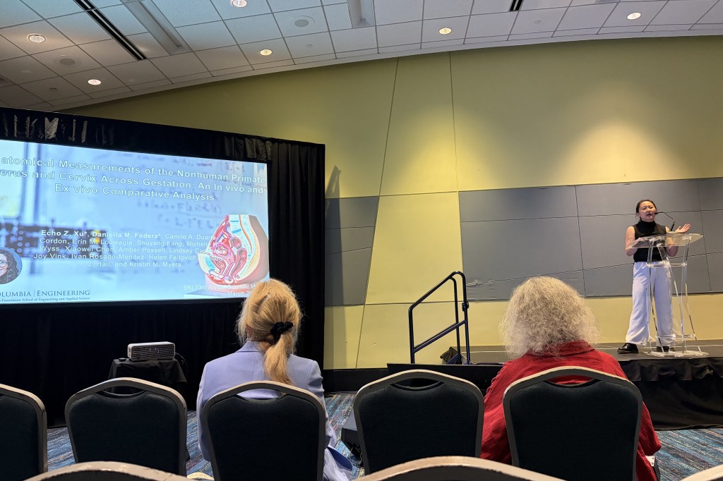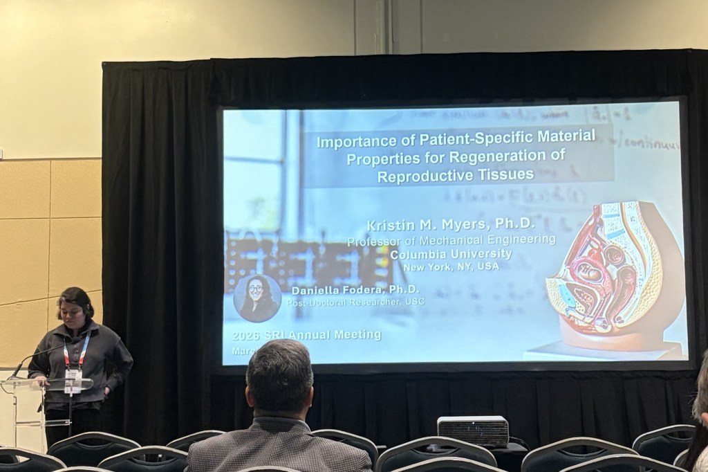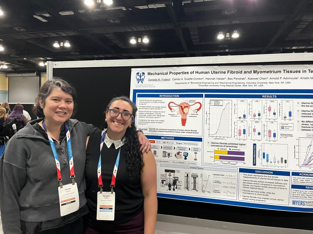 Professor Myers and Echo Xu delivered podium presentations! Professor Myers shared work focusing on the importance of understanding mechanical testing modalities for investigations of reproductive tissues, and Echo’s presentation highlighted a multimodal characterization of nonhuman primate uterocervical anatomy throughout pregnancy.