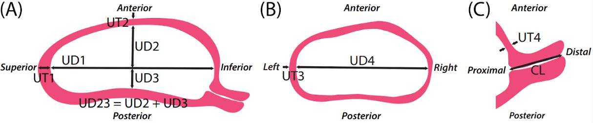 Figure 2: Digitized maternal geometry from ultrasonic measurements across gestation.